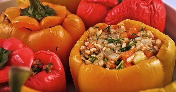 Place tops back on peppers and bake for an extra 30-40 minutes until the peppers are soft.